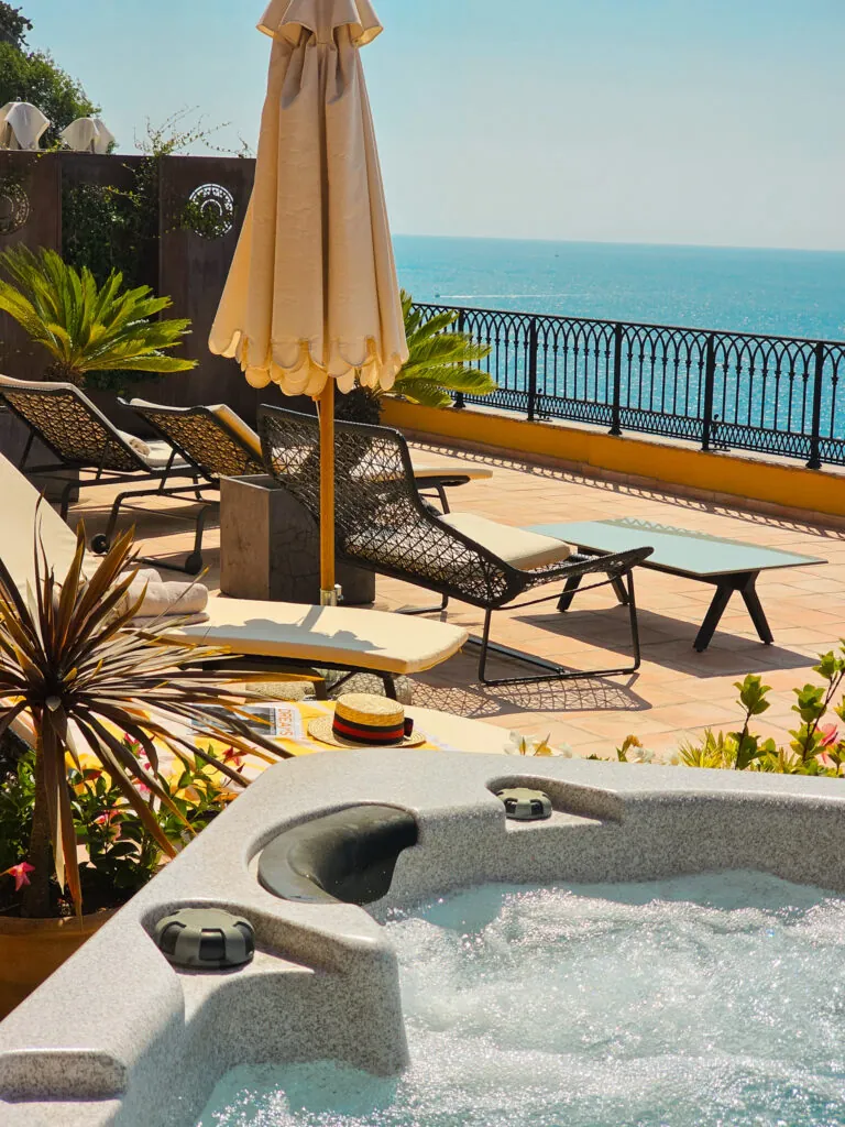 For a honeymoon or anniversary, celebrate your love in this suite with its own private outdoor jacuzzi. The Mediterranean Suite is truly an oasis of comforts and wellness.