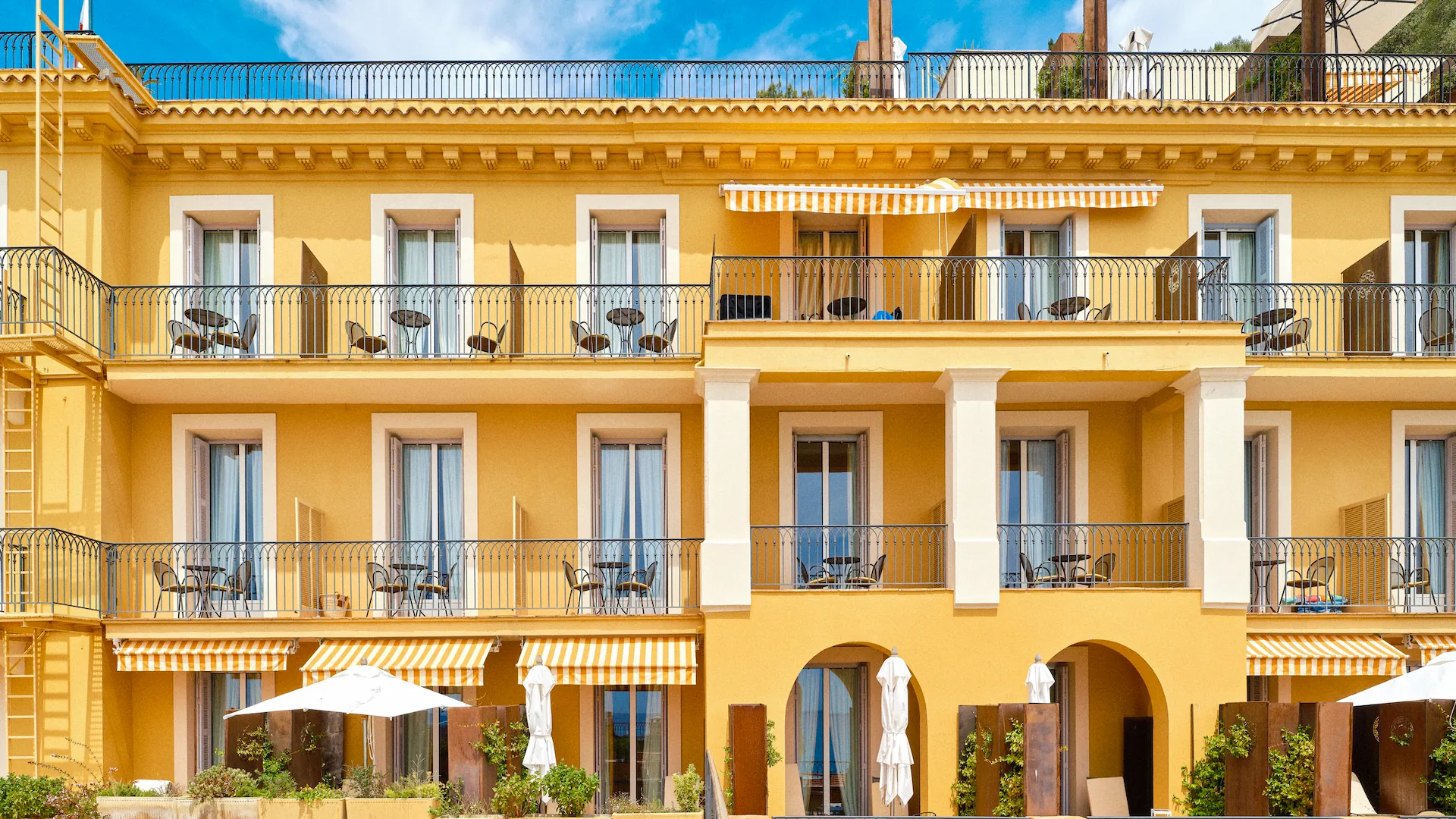 Facing the hotel, the sunny façade calls to mind the golden light and time-honored architecture of Provence, as well as the region’s craggy geology. Behind you is the endless blue for which the Côte d’Azur is so aptly named. Stepping into the lobby, you immediately feel at home and at ease.