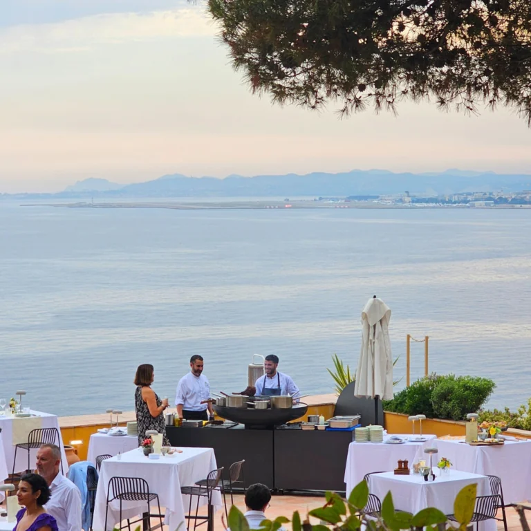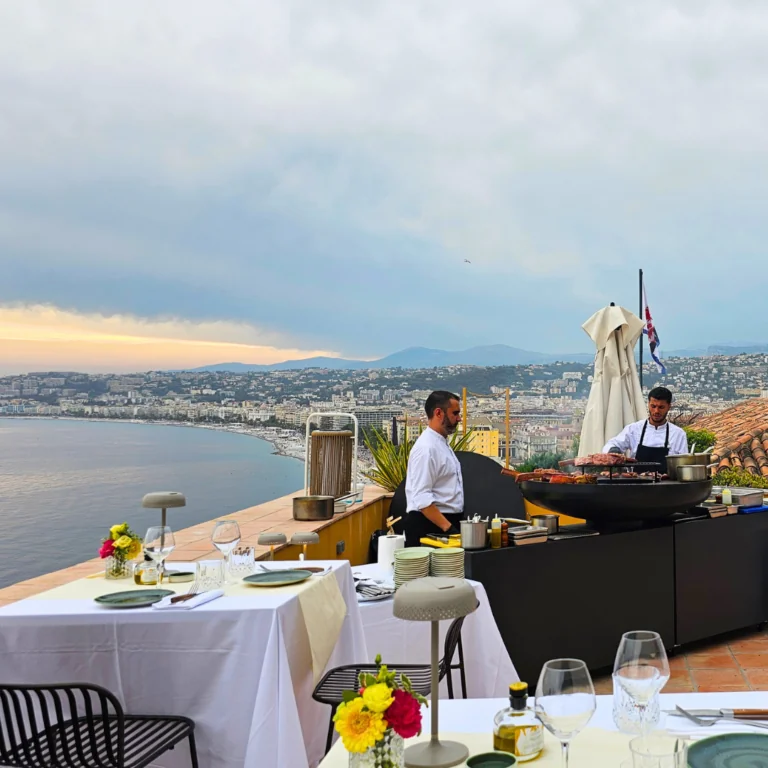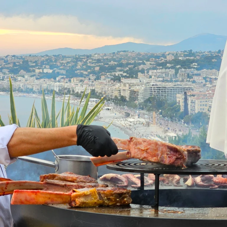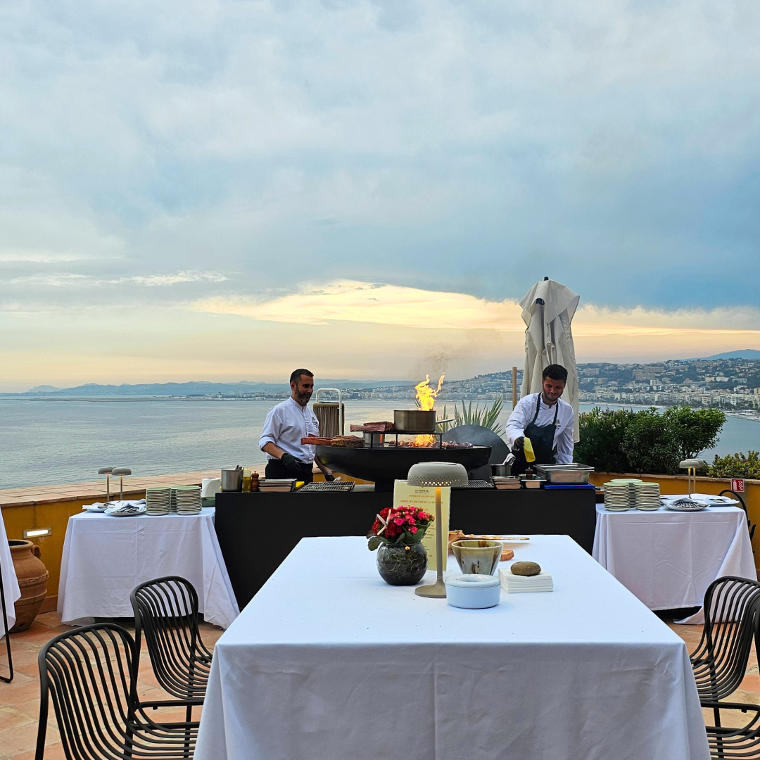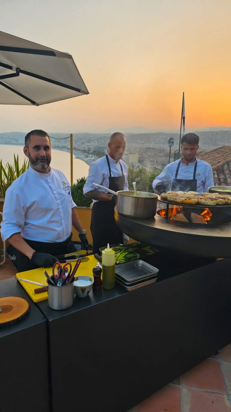 A moment as delicious as exceptional, to be shared around a brazier and a show cooking animation created by the Chef Damien Andrews’ brigade, in a privileged and magical setting, between the Castle Hill and the infinite blue of the Mediterranean Sea.